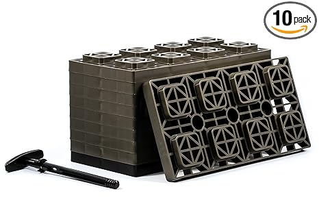 Camco Fasten 4x2 Leveling Block For Dual Tires Interlocking Design Allows Stacking To Desired Height Includes Secure T Handle Carrying System Brown